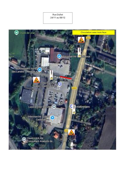 Le Syndicat Départemental Eau47 poursuivra ses travaux rue Pierre Dufiet du 3 novembre au 8 décembre 2025, entraînant des perturbations de circulation.